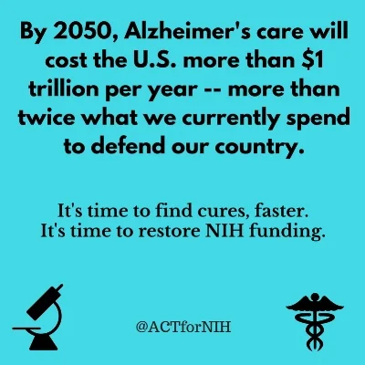 An aging population, growing obesity rates, a worsening diabetes epidemic, and rising Alzheimer's rates mean it's more important than ever to restore NIH funding and invest in a healthy future.